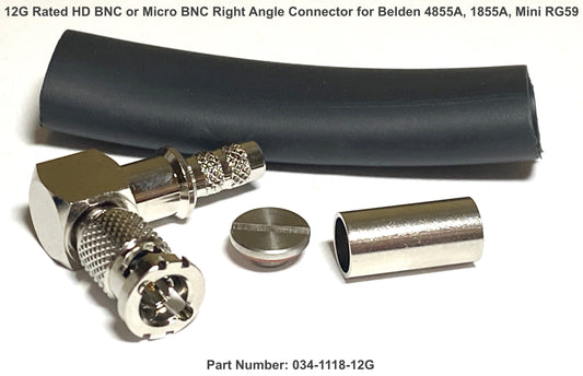 SKU: 034-1118-12G-CCCRight Angle Crimp 12G HD-BNC Connector for Belden 4855R/1855A Cable - 75 Ohm