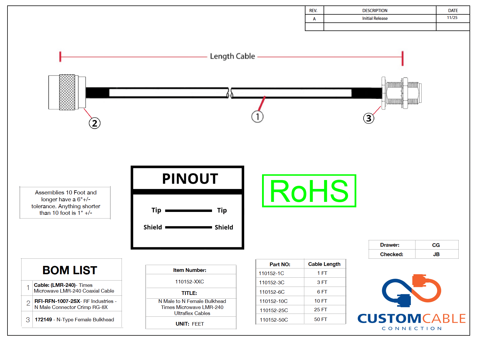 Cable Type: LMR-240, RG8X