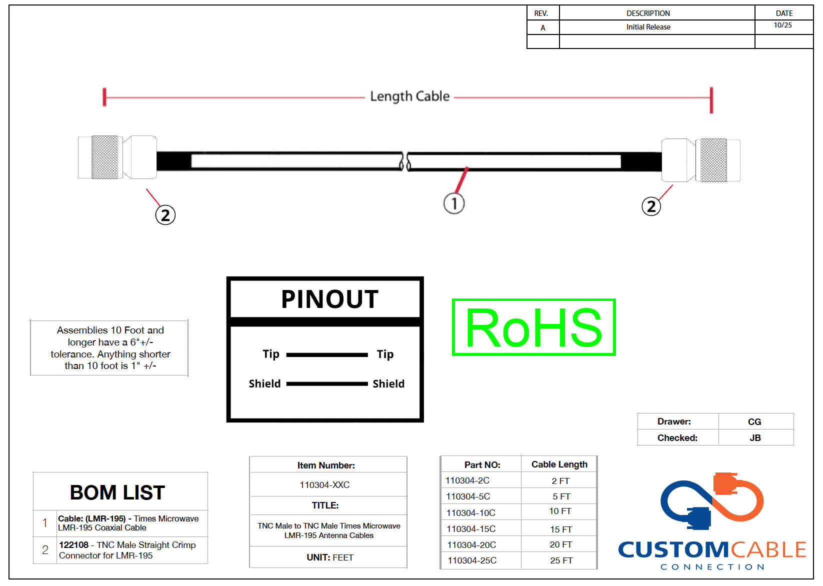 Times Microwave LMR-195 is designed for flexibility, low loss, RF shielding, and weatherability. LMR-195's cable design enables the tightest bend radius for any cable of similar size and performance. The cable has the lowest loss of any comparable cable. With 90 dB of RF shielding this cable is suitable for applications with a large amount of EMI. LMR-195 can be installed both in and outdoors. Use Times Microwave brand LMR-195 cable for any application (e.g. WLL, GPS, LMR, WLAN, WISP, WiMax, SCADA, Mobile Antennas) requiring an easily routed, low loss RF cable. LMR-195 is a drop-in replacement for RG58 and RG-142.