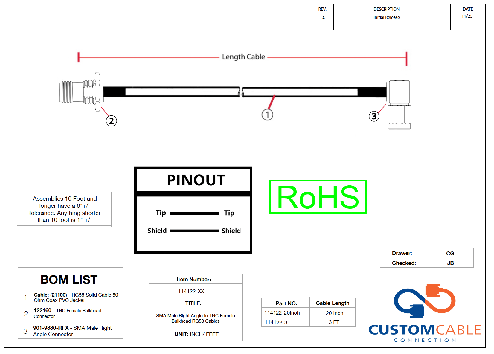 Connector Type: SMA Right Angle to TNC Bulkhead