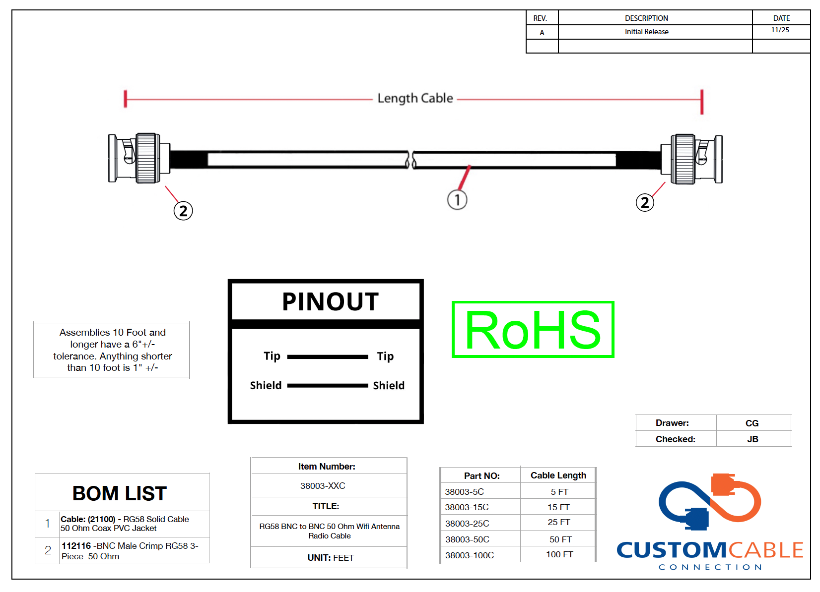 | 38003-2CC | 2ft / Black | 0.25 lb |