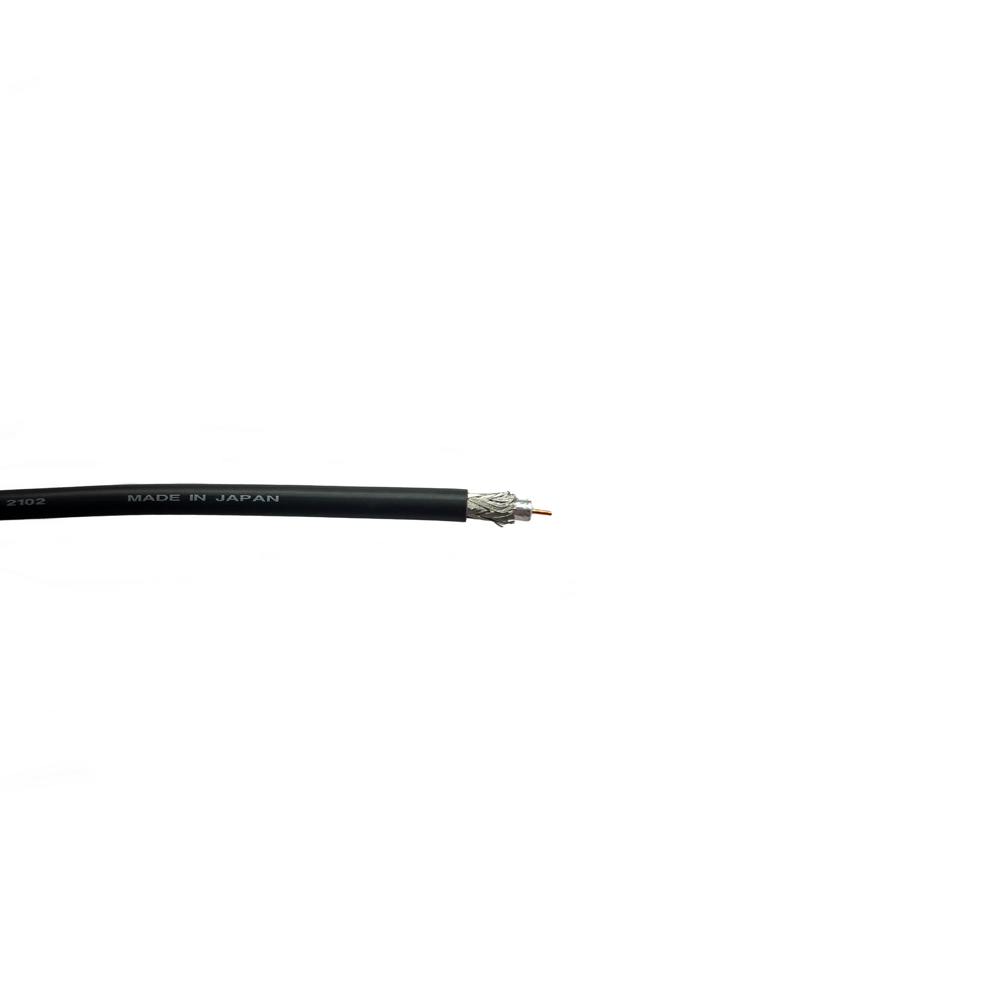 The black L-4CFB RG59 HD-SDI Coaxial Cable from Canare is a 20 AWG RG59 type digital video cable roll. The cable is designed for use with SD/HD-SDI applications, satellite head-ends, or any other work in broadband, digital, and HDTV facilities. The cable is rated at 75 Ohm impedance and features low signal loss. It also includes a solid copper center conductor, a tinned copper-braided shield, and foam polyethylene dielectric.