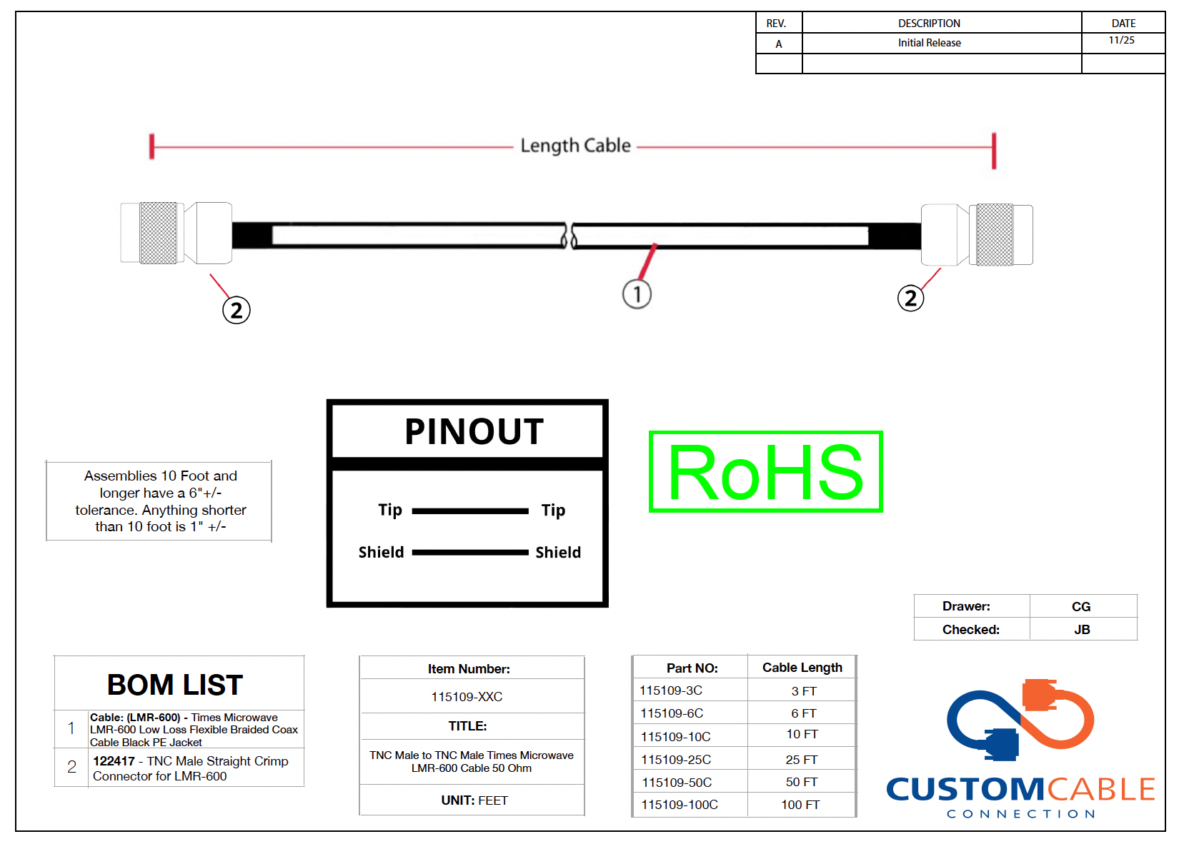 TNC Male to TNC Male Times Microwave LMR-600 Cable