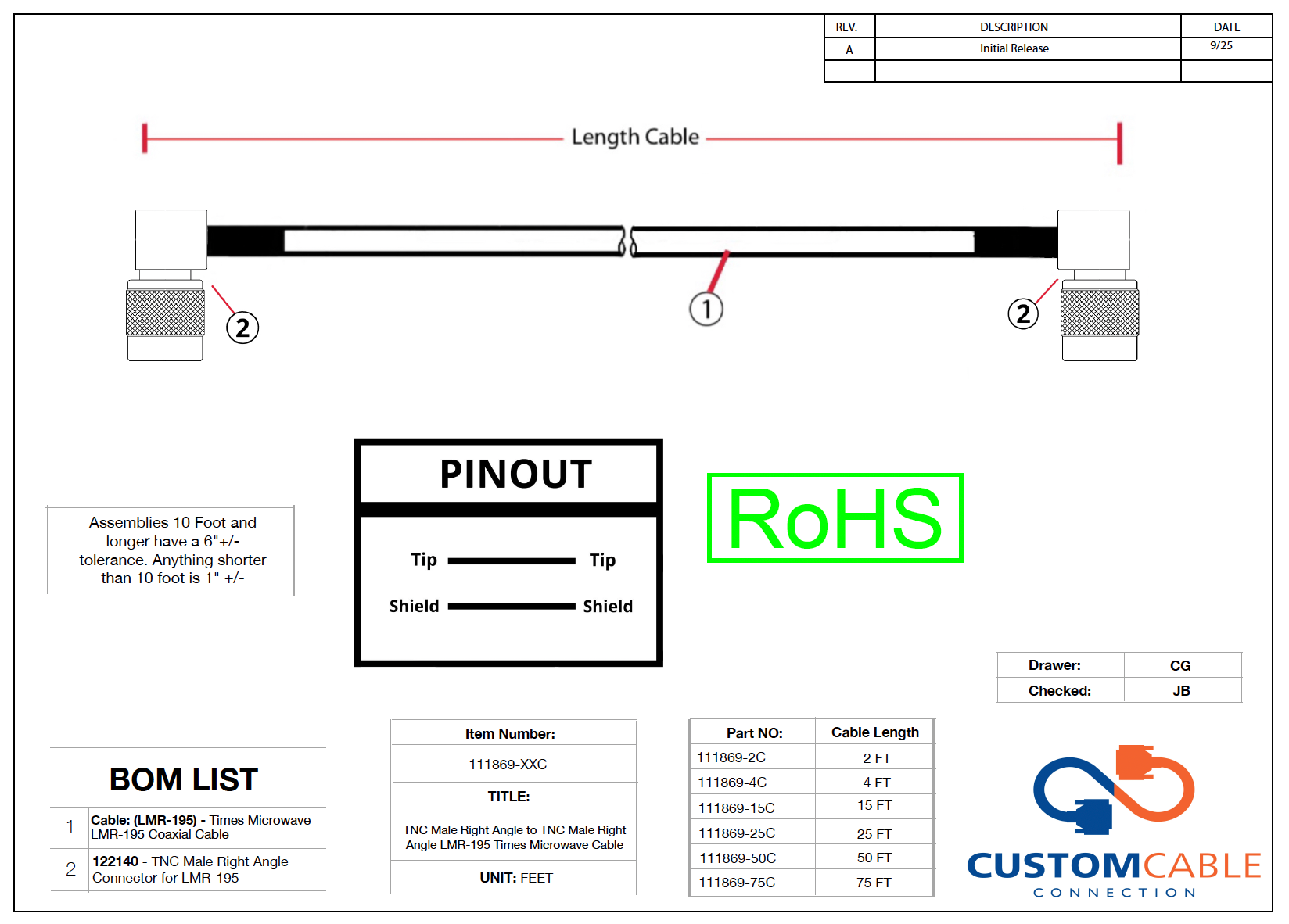 Times Microwave LMR-195 is designed for flexibility, low loss, RF shielding, and weatherability. LMR-195's cable design enables the tightest bend radius for any cable of similar size and performance. The cable has the lowest loss of any comparable cable. With 90 dB of RF shielding this cable is suitable for applications with a large amount of EMI. LMR-195 can be installed both in and outdoors. Use Times Microwave brand LMR-195 cable for any application (e.g. WLL, GPS, LMR, WLAN, WISP, WiMax, SCADA, Mobile Antennas) requiring an easily routed, low loss RF cable. LMR-195 is a drop-in replacement for RG58 and RG-142.